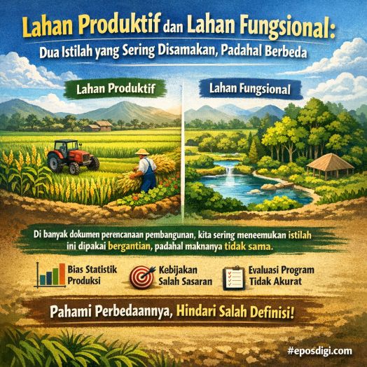Eposdigi.com – Di banyak dokumen perencanaan pembangunan (baik tingkat desa, kecamatan, hingga kabupaten), kita kerap menemukan istilah lahan produktif dan lahan fungsional. Menariknya, dua istilah ini sering dipakai secara bergantian, seolah-olah memiliki makna yang identik. Padahal, dalam perspektif perencanaan, statistik pertanian, maupun kebijakan tata ruang, keduanya tidak selalu sama. Kesalahan memahami istilah bukan sekadar perkara […]